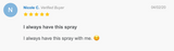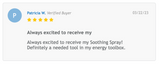 - "Any stressful moments in my day is when I spray Soothing Spray!"